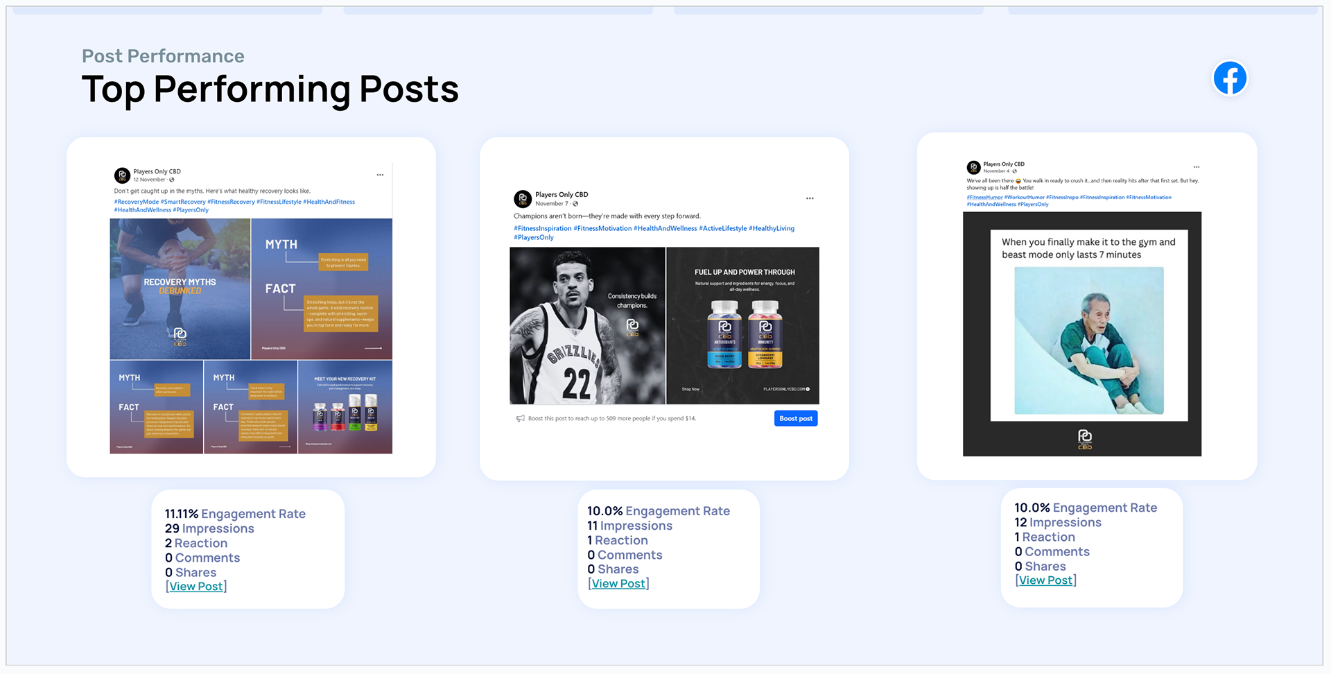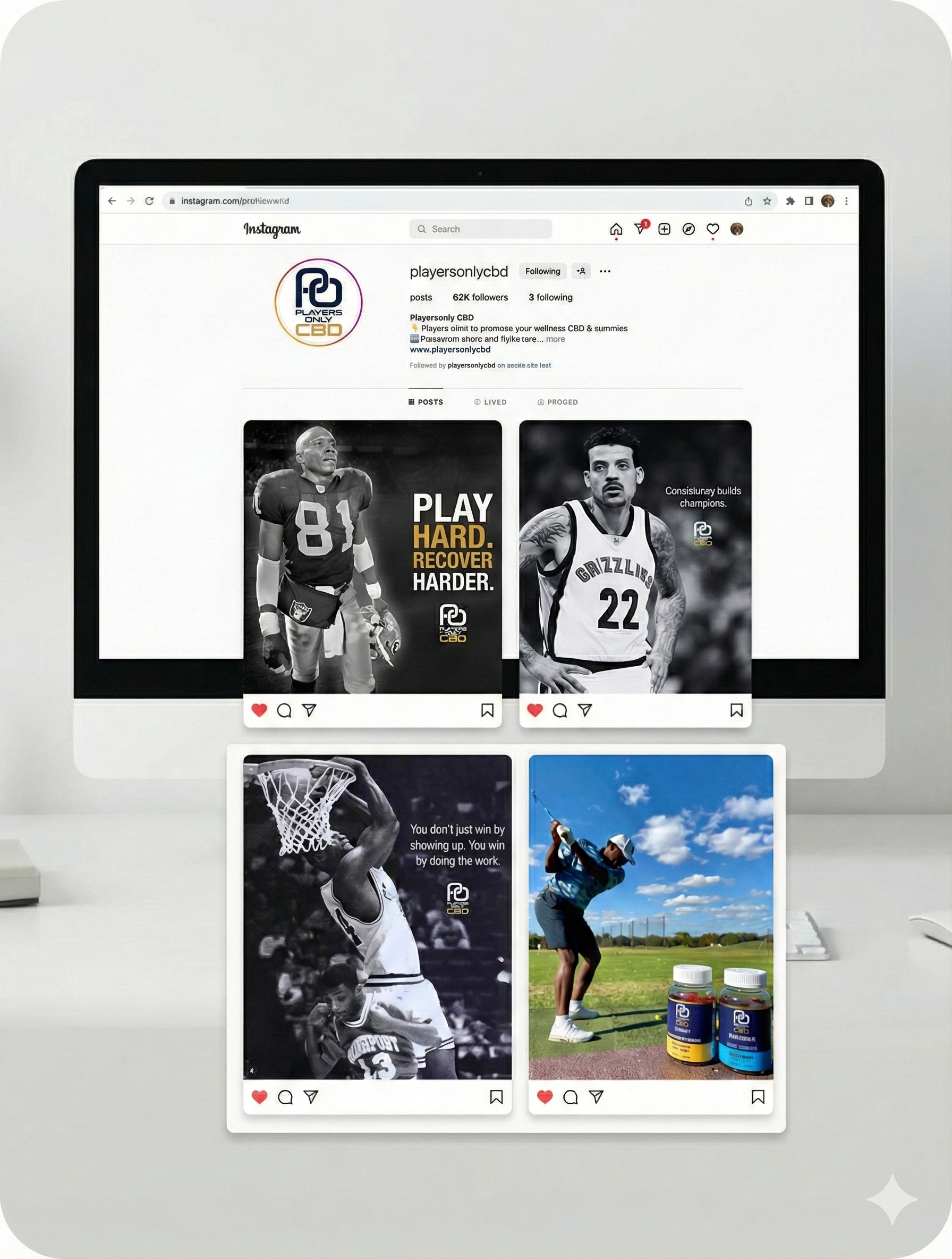 Over the course of our partnership, Players Only CBD moved from sporadic posting to a clear, consistent content system.
